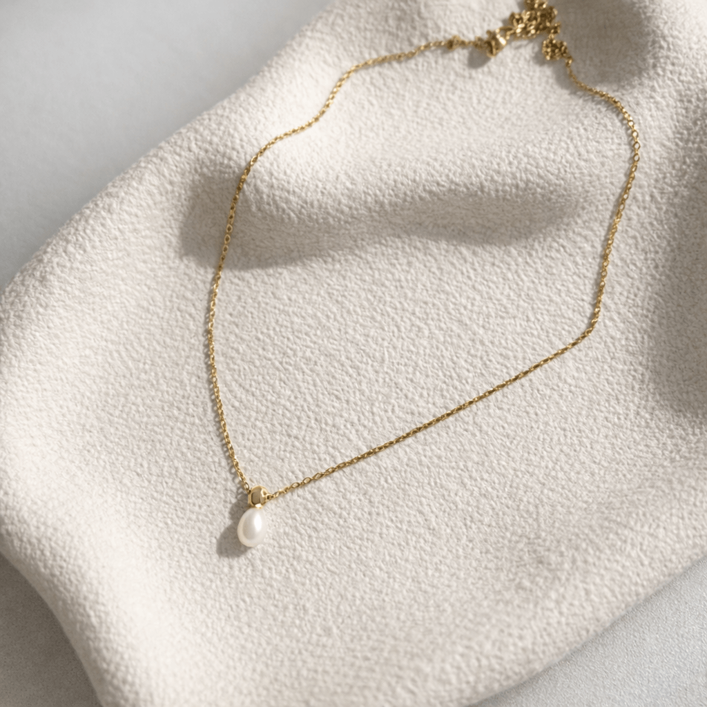 The Isla Pearl Necklace is a timeless essential designed for effortless elegance. Featuring a delicate gold chain and a single luminous freshwater pearl, this piece adds a soft glow to everyday looks. Minimal yet refined, Isla is made to be worn alone or layered—day to night, season after season.